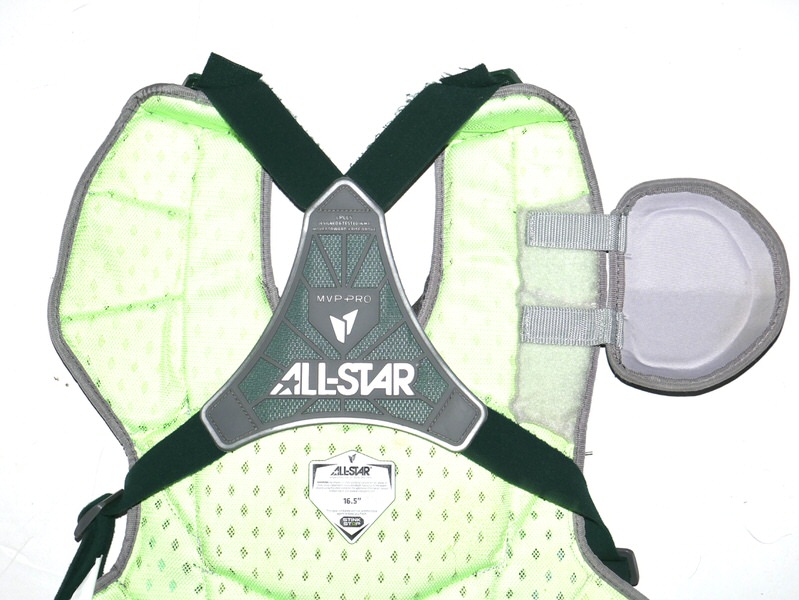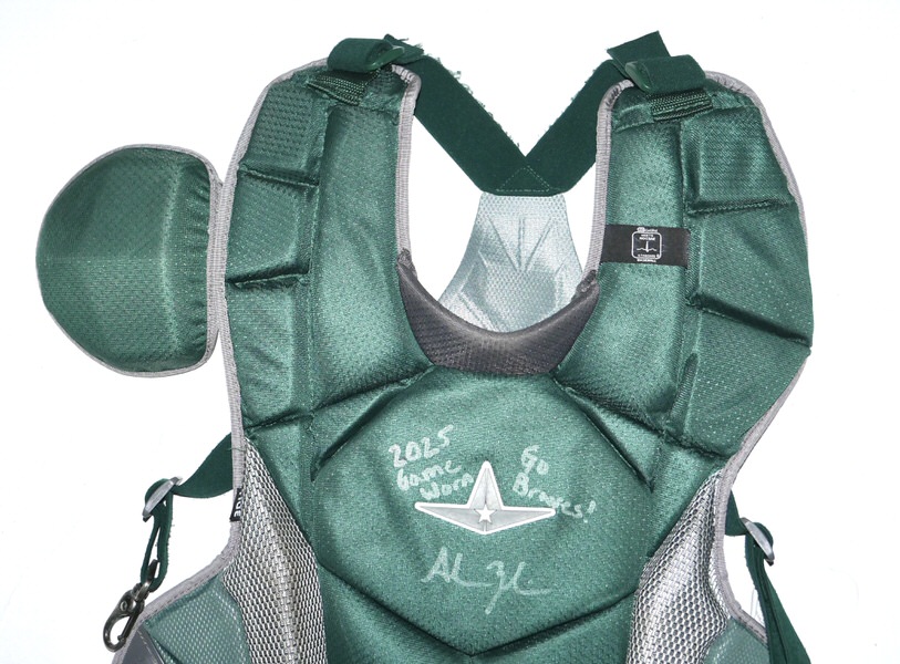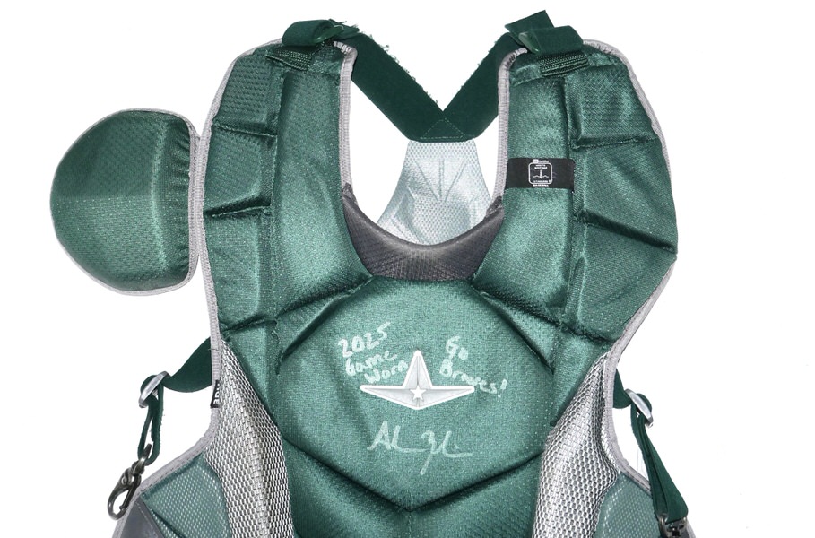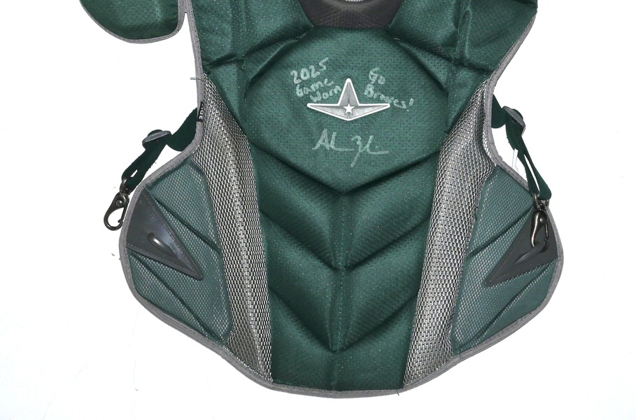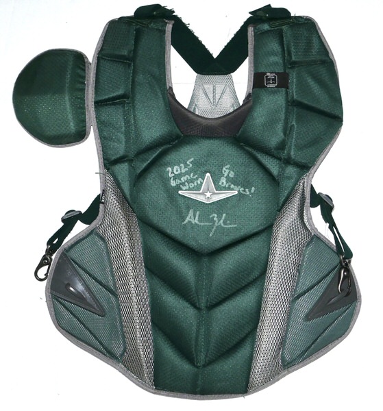 The featured All-Star MVP-PRO Chest Protector was game worn by Adam Zebrowski in 2025 as a member of the Columbus Clingstones. The Columbus Clingstones are a Minor League Baseball team of the Southern League and the Double-A affiliate of the Atlanta Braves. They are located in Columbus, Georgia, and play their home games at Synovus Park. In 2025, Zebrowski played in 87 games for the Clingstones and hit 9 Hrs and knocked in 42 Runs. The talented catcher signed the Chest Protector and added “2025 Game Worn Go Braves!” in silver. The Chest Protector shows good use and was obtained directly from Adam Zebrowski!