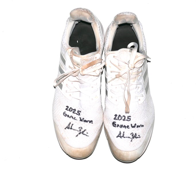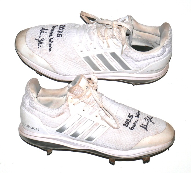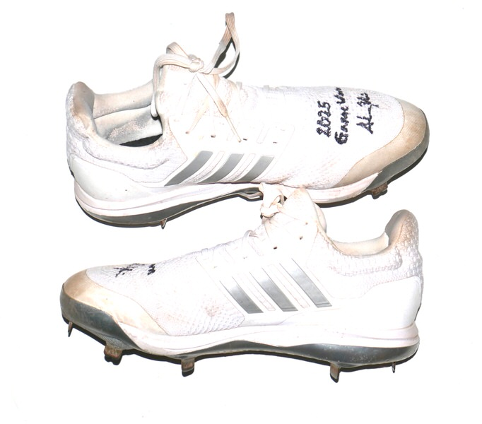 The featured white and silver Adidas Ultraboost Baseball Cleats were game worn by Adam Zebrowski in 2025 as a member of the Columbus Clingstones. The Columbus Clingstones are a Minor League Baseball team of the Southern League and the Double-A affiliate of the Atlanta Braves. They are located in Columbus, Georgia, and play their home games at Synovus Park. In 2025, Zebrowski played in 87 games for the Clingstones and hit 9 Hrs and knocked in 42 Runs. The talented catcher signed the Cleats and added “2025 Game Worn” in black. The Cleats show good use and were obtained directly from Adam Zebrowski!
