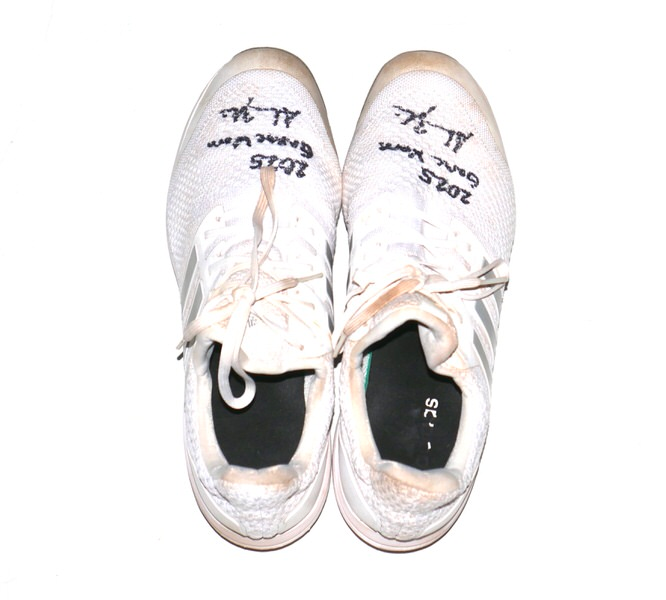 Adam Zebrowski 2025 Columbus Clingstones Game Worn & Signed White & Silver Adidas Ultraboost Baseball Cleats