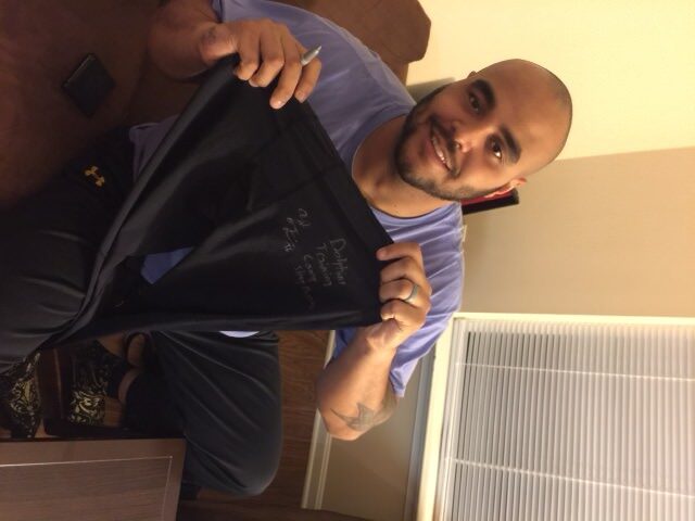 Featured are AJ Francis’ main pair of sleep pants in 2015 training camp with the Miami Dolphins. The talented defensive lineman has signed the 3xl tights and added “Dolphins Training Camp Sleep Pants” in silver.