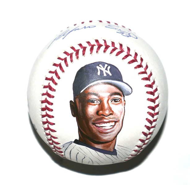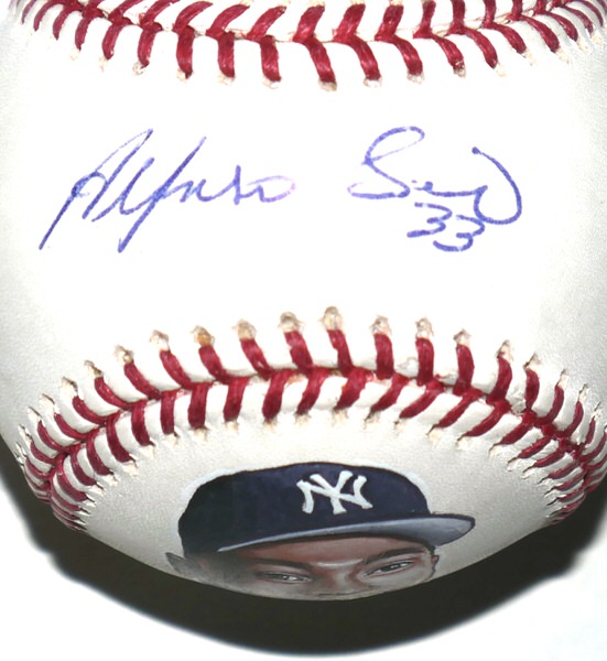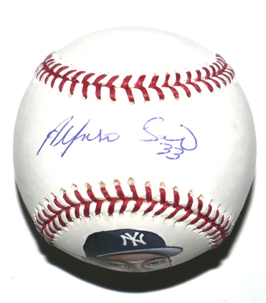 Alfonso Soriano New York Yankees Autographed Signed Rawlings Official Major League Baseball with Hand-Painted Portrait