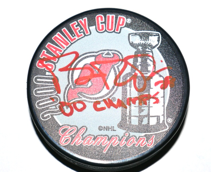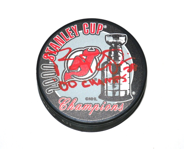 Brian Rafalski Signed 2000 Devils Stanley Cup Champions Logo Hockey Puck with “00 Champs” Inscription – JSA Witnessed