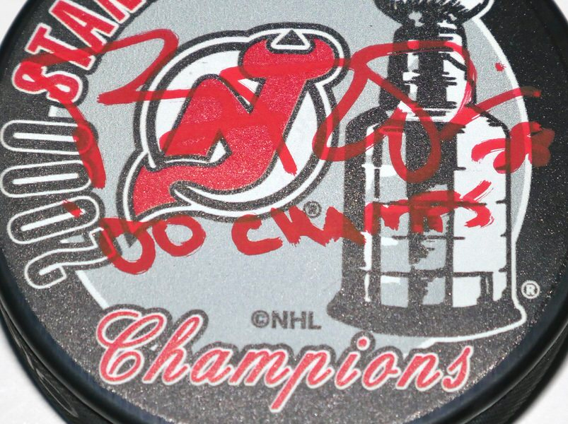 The featured 2000 Devils Stanley Cup Champions Logo Hockey Puck has been signed by Brian Rafalski and he has added an awesome “00 Champs” inscription. The autograph includes an official James Spence Authentication (JSA) hologram for authenticity purposes. The signing of this item was witnessed by JSA.