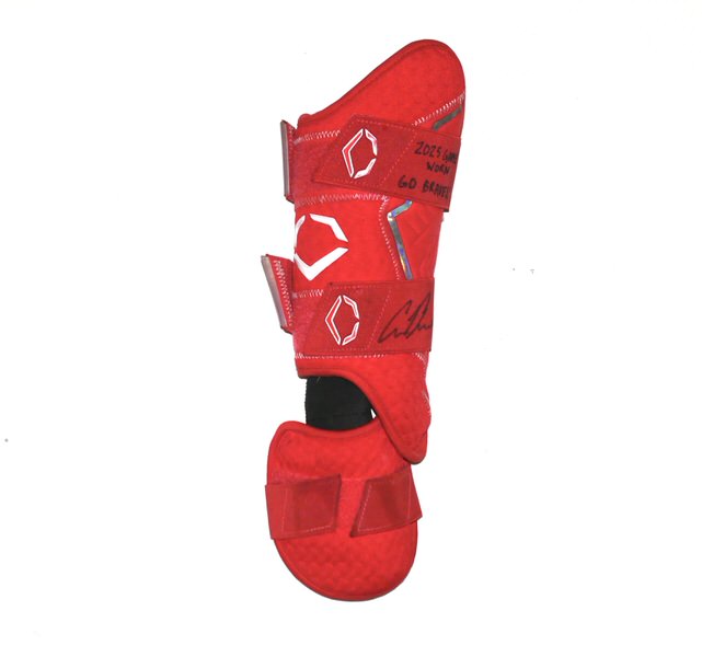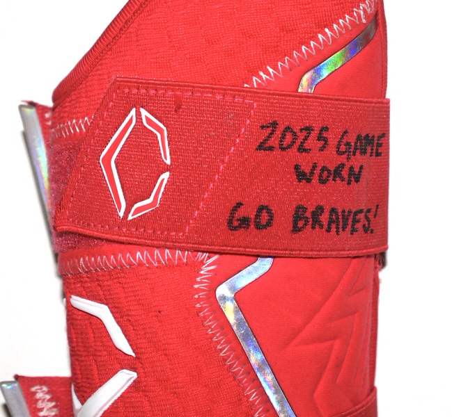 The featured EvoShield PRO-SRZ 2.0 Batter Leg Guard was game worn by Cade Bunnell in 2025 as a member of the Columbus Clingstones. In 2025, Bunnell has split time with Columbus and the Braves Triple-A Gwinnett team. The Columbus Clingstones are a Minor League Baseball team of the Southern League and the Double-A affiliate of the Atlanta Braves. They are located in Columbus, Georgia, and play their home games at Synovus Park. Bunnell signed the Leg Guard and added “2025 GAME WORN” and “GO BRAVES!” in black. The Leg Guard was obtained directly from Cade Bunnell!!!