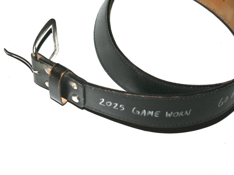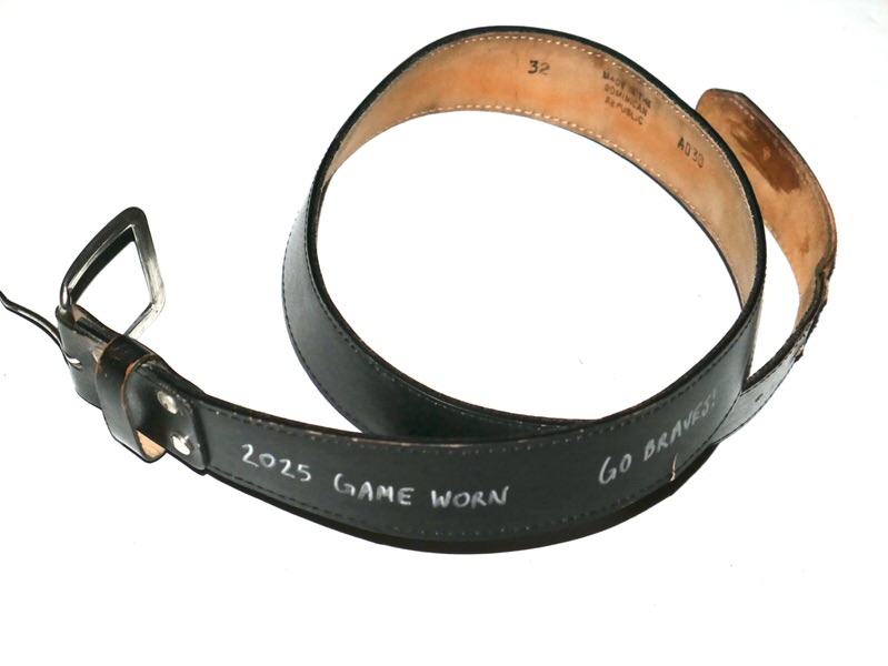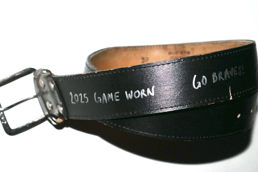 Cade Bunnell 2025 Gwinnett Stripers Game Worn & Signed “GO BRAVES!” Leather Baseball Belt