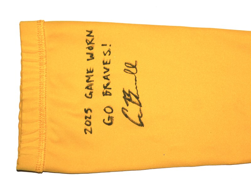 Cade Bunnell 2025 Gwinnett Stripers Game Worn & Signed Gold Arm Sleeve