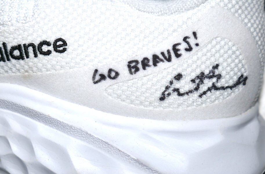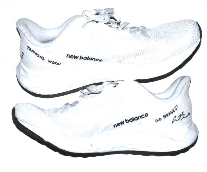 The featured size 10.5 New Balance Fresh Foam Arishi v4 Shoes were worn in training by Cade Bunnell in 2025 as a member of the Gwinnett Stripers. The Gwinnett Stripers are a Minor League Baseball team of the International League (IL) and the Triple-A affiliate of the Atlanta Braves. They are named for striped bass in reference to the popularity of fishing in the region. In 2025, Bunnell played in 32 games with Gwinnett. The talented infielder signed the Shoes and added “2025 TRAINING WORN GO BRAVES!” in black. The Shoes were obtained directly from Cade Bunnell!!!