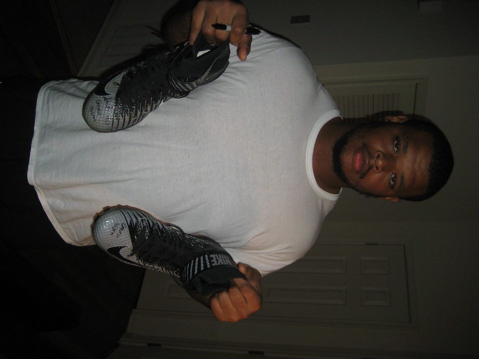 The featured silver and black size 14 nike lunarbeast elite td cleats were game worn by Deon Simon as a member of the New York Jets. These dynamite cleats are made with stabilizing Flywire cables for a locked-down feel. A full-length Lunarlon midsole cushions your foot from heel to toe. Simon has signed the cleats and added “Game Worn” in black. The cleats show good use.