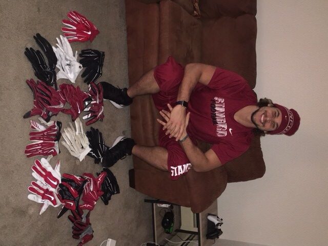 The featured white and silver nike superbad 3xl gloves were game worn by Devon Cajuste as a member of the Stanford Cardinal. The talented wide receiver has signed both gloves in black. The gloves show great use!!