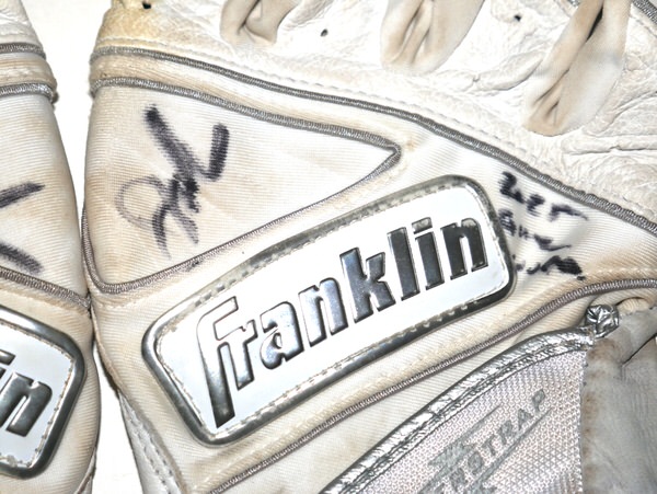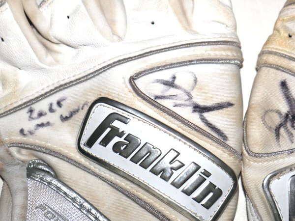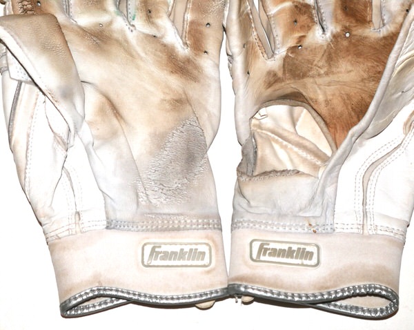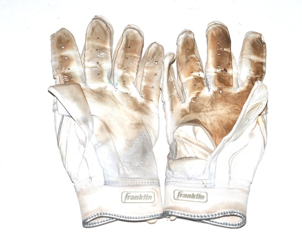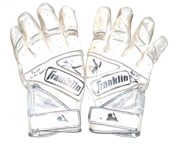 The featured white and grey Franklin Batting Gloves were game worn by Drew Lugbauer in 2025 as a member of the Algodoneros Union Laguna. The Algodoneros de Unión Laguna are a professional baseball team in the Mexican League (LMB). Based in Torreón, Coahuila, they play in the North Division of LMB. Lugbauer signed the Gloves and added “2025 Game Worn” in black. The Gloves show good use with a hole in the palm of the right glove and were obtained directly from Drew Lugbauer!!!