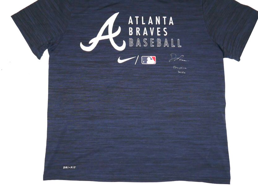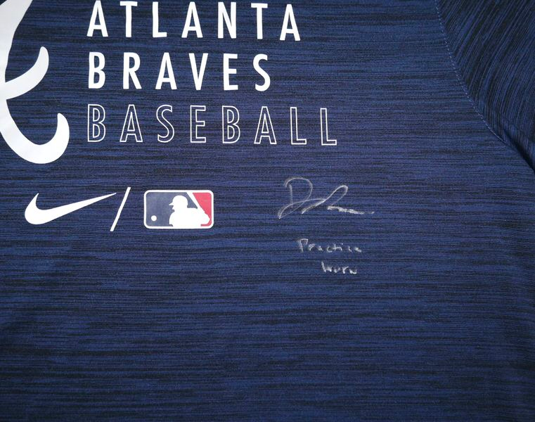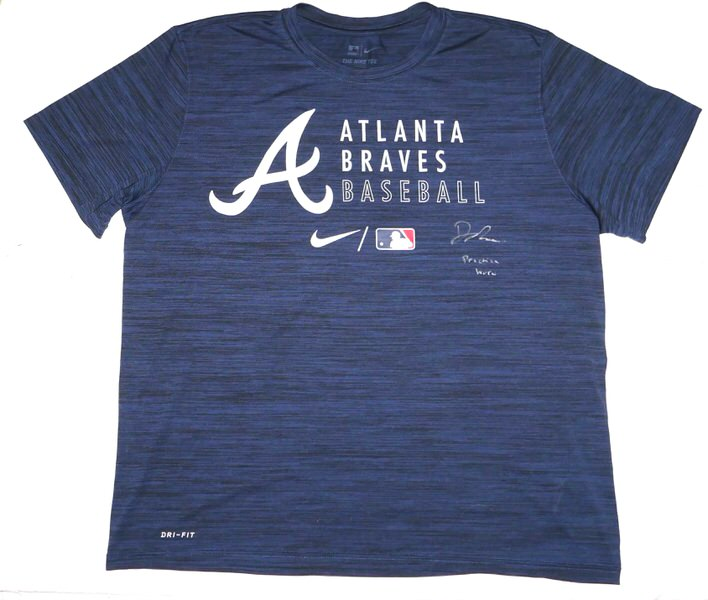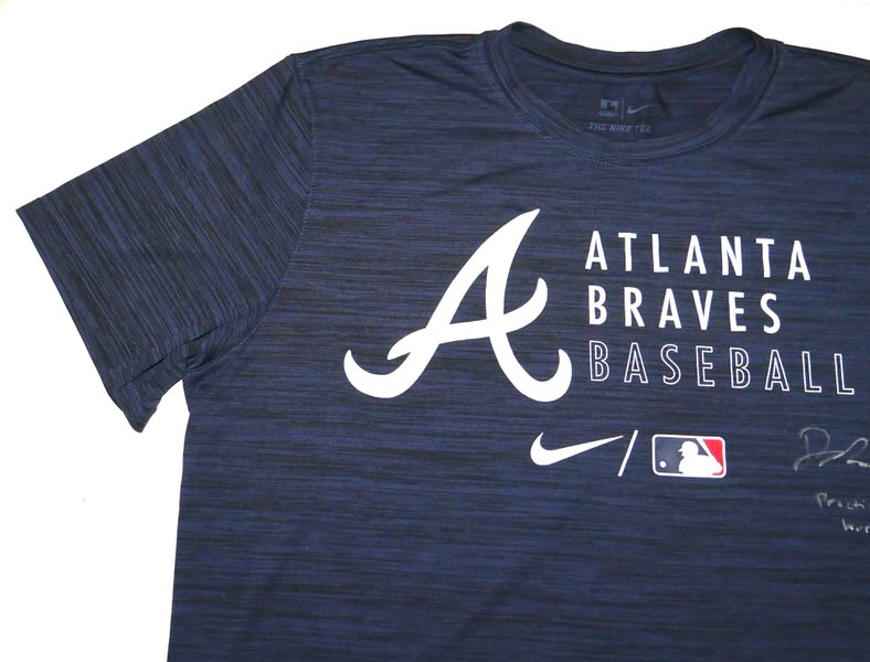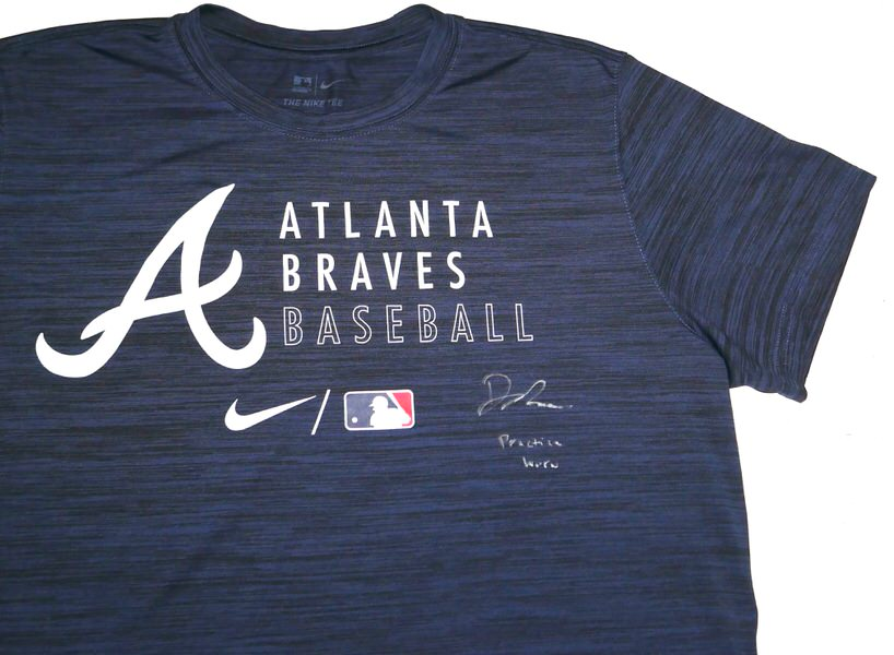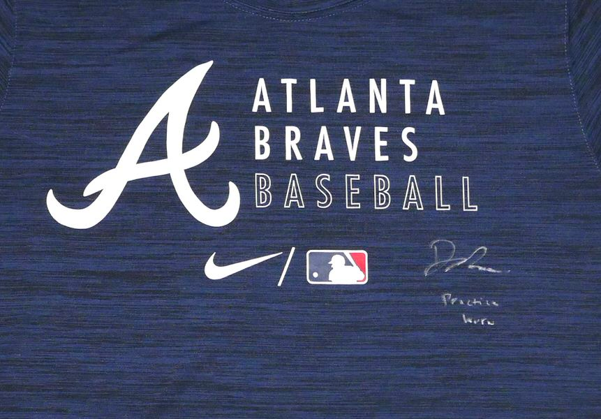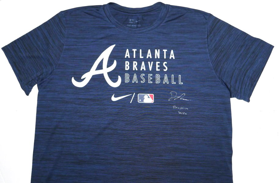 The featured blue Atlanta Braves Baseball Nike Dri-Fit Shirt was issued to and worn in practice by Drew Lugbauer in 2022 as a member of the Mississippi Braves. The Mississippi Braves (M-Braves) were a Minor League Baseball team in the Double-A Southern League that served as the affiliate for the Atlanta Braves from 2005 to 2024. Based in Pearl, Mississippi, at Trustmark Park, they developed major league talent like Freddie Freeman and Jason Heyward. In 2022, Lugbauer was one of the most productive hitters in Double-A hitting 28 HR’s and knocking in 82 Runs for the Braves. Lugbauer signed the Shirt and added “Practice Worn” in silver. The Shirt was obtained directly from Drew Lugbauer!!!