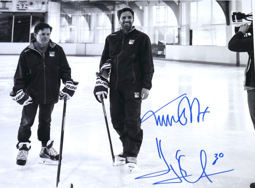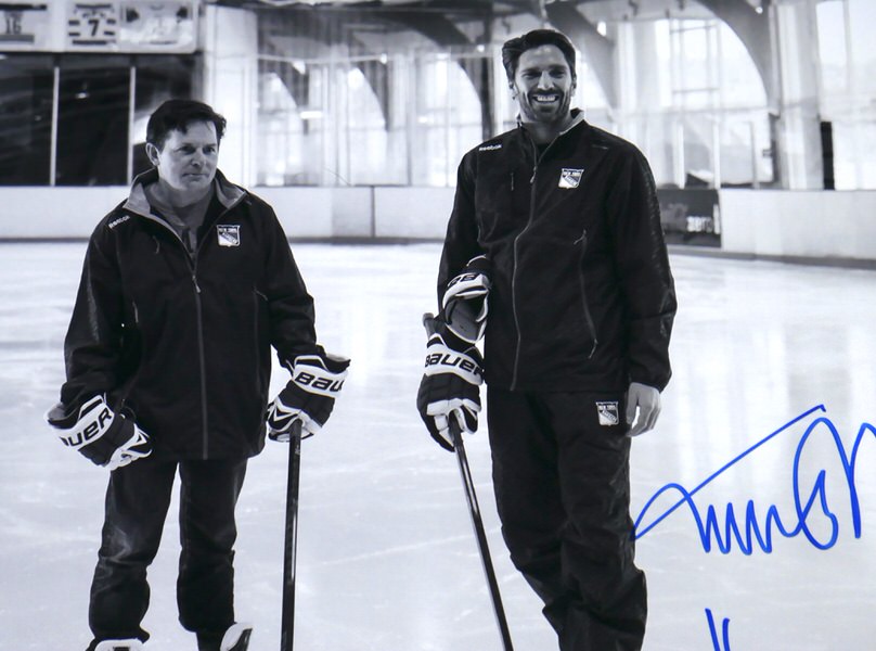 Henrik Lundqvist & Michael J. Fox Autographed Signed “On Ice” 11×14 Photo – Steiner – Comes In 11 x 14 Toploader!