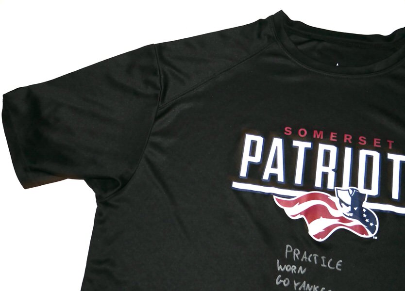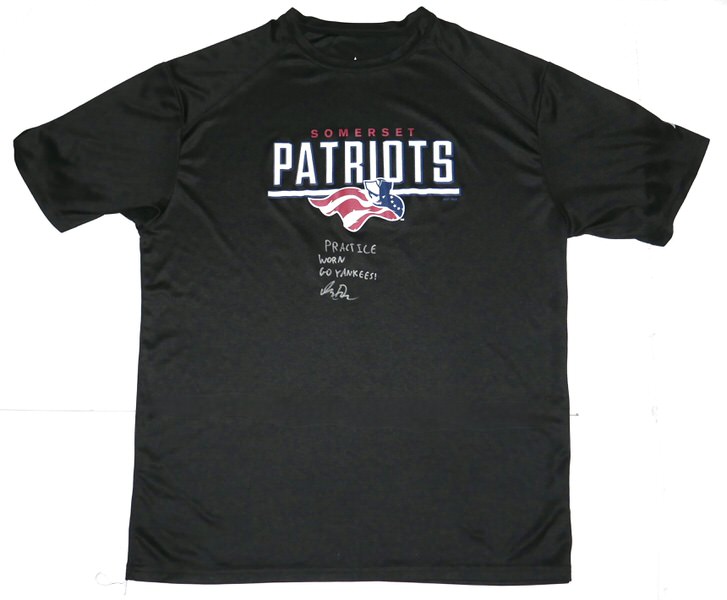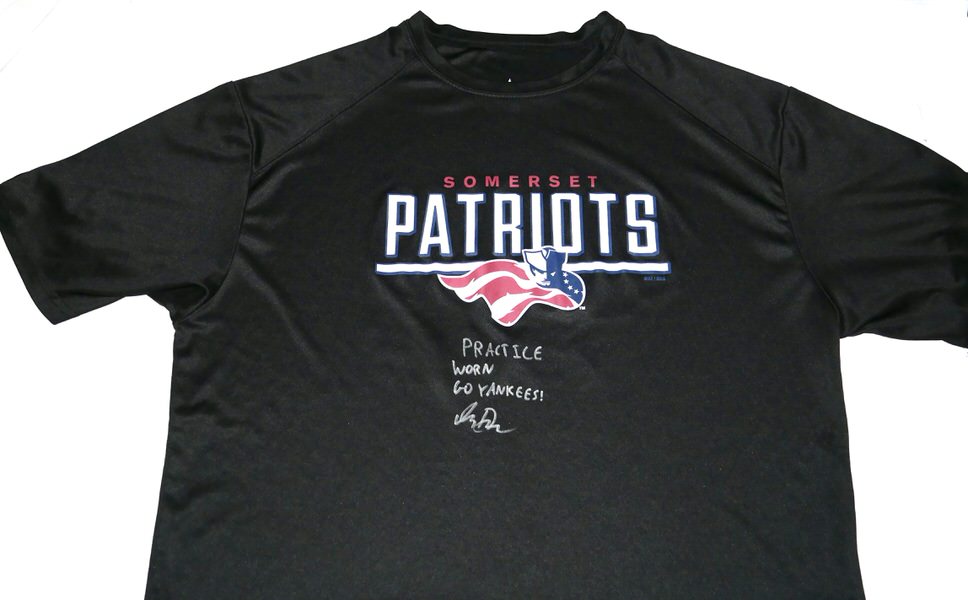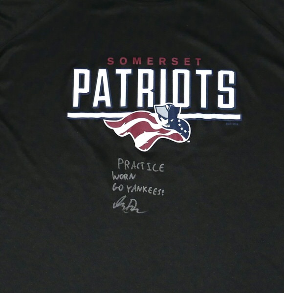 The featured official black Somerset Patriots BSN Sports XL Shirt was issued to and worn in practice by Indigo Diaz in 2025 as a member of the Somerset Patriots. The Somerset Patriots are an American Minor League Baseball team based in Bridgewater Township, New Jersey, that is the Double-A affiliate of the New York Yankees. In 2025, Diaz went 8-3 with a 2.58 ERA. Diaz signed the Shirt and added “2025 PRACTICE WORN GO YANKEES!” in silver. The back of the Shirt features a Somerset Patriots player issued “45” in white numbers. The Shirt was obtained directly from Indigo Diaz!