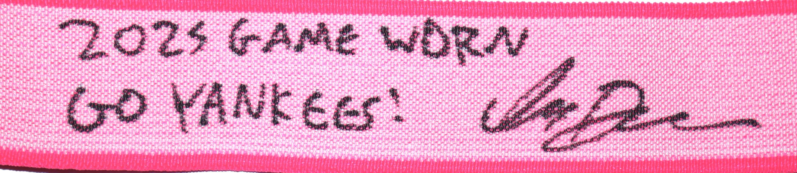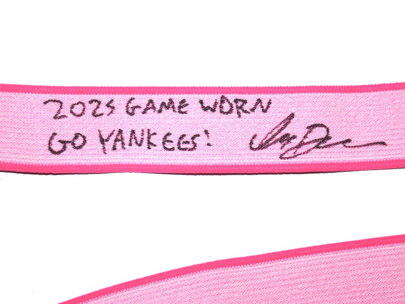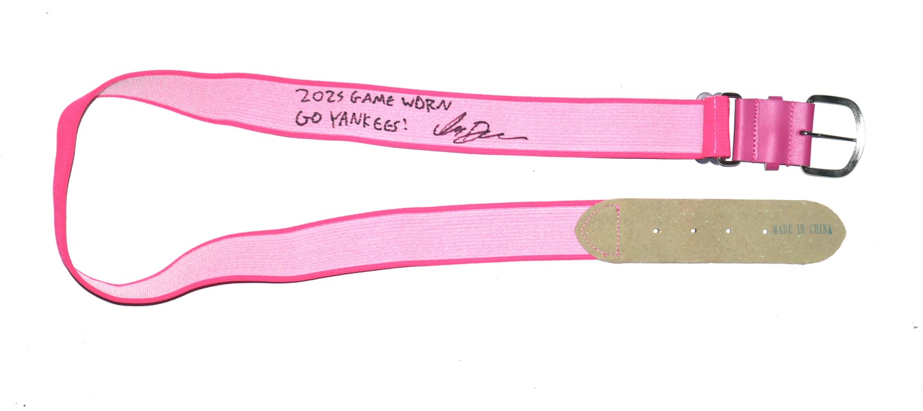 The featured pink Baseball Belt was game worn by Indigo Diaz in 2025 as a member of the Somerset Patriots. The Somerset Patriots are an American Minor League Baseball team based in Bridgewater Township, New Jersey, that is the Double-A affiliate of the New York Yankees. In 2025, Diaz went 8-3 with a 2.58 ERA. Diaz signed the Belt and added “2025 GAME WORN GO YANKEES” in black. The Belt was obtained directly from Indigo Diaz!
