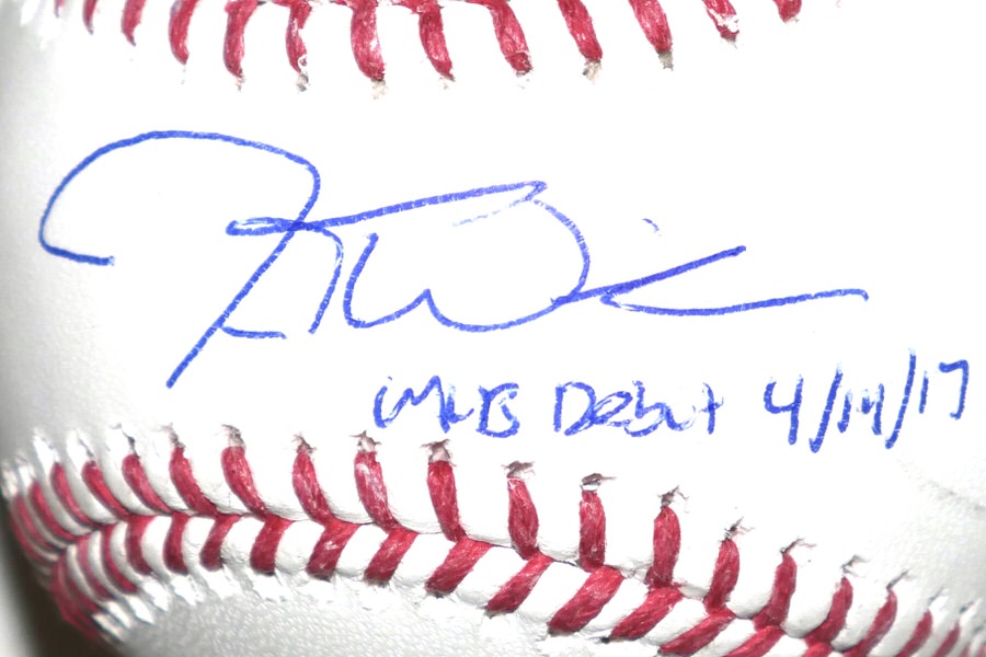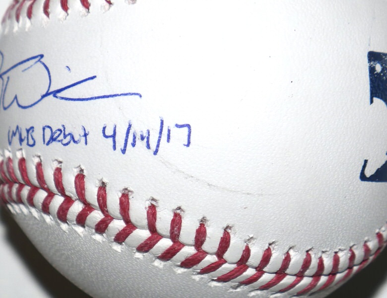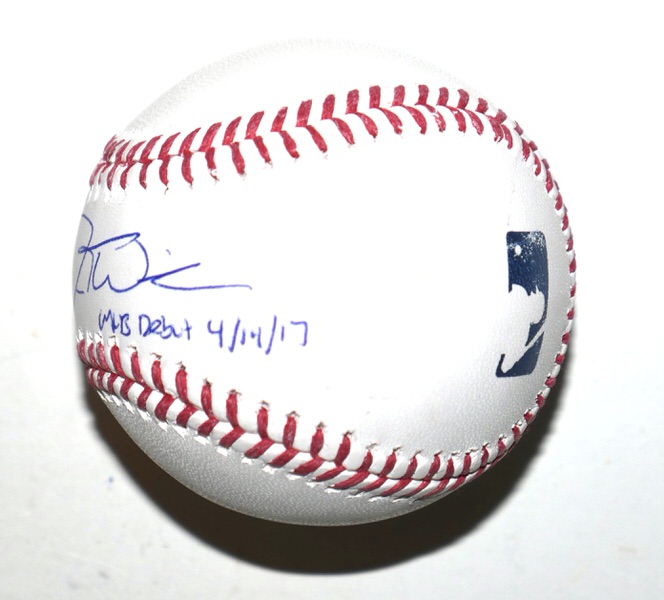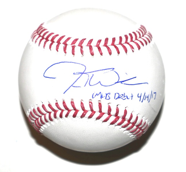 The featured Rawlings Official Major League Baseball has been signed and inscribed “MLB Debut 4/14/17” in blue by New York Mets Outfielder Jesse Winker. The Baseball has a scratch mark through the end of the signature and end of the inscription. (Please see Images) The Baseball includes an official James Spence Authentication (JSA) hologram for authenticity purposes..