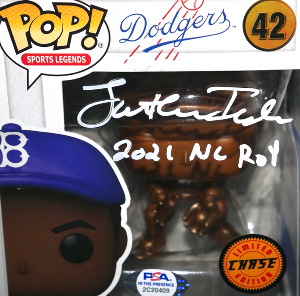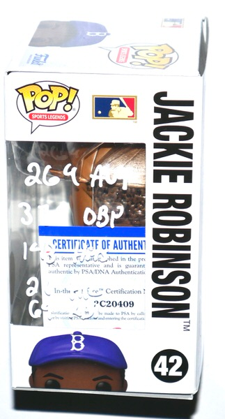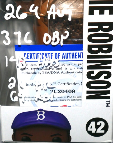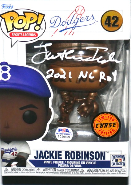 The Jackie Robinson “Brooklyn Dodgers” #42 Funko Pop! Vinyl Figure has been hand-signed and inscribed by Jonathan India with awesome “2021 NL ROY, 269 AVG, 376 OBP, 143 Hits, 21 HR, 69 RBI” inscriptions in silver. A ground-breaking athlete elected to the National Baseball Hall of Fame in 1962 and awarded NAACPs prestigious Spingarn Medal, Jackie Robinson is an iconic athlete who championed racial equality. The Funko Pop! measures 4″ tall and includes an official PSA/DNA hologram and matching COA for authenticity purposes. The signing of this item was witnessed by PSA. Awesome and unique item signed by one of MLB’s most exciting players!!!