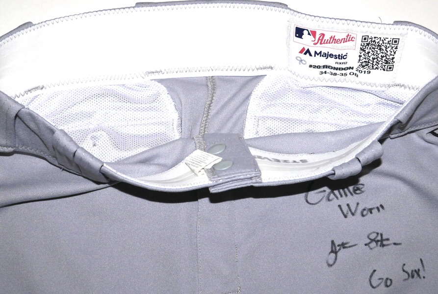 The featured grey Nike Pants were worn by Jonathan Stiever in Spring Training as a member of the Chicago White Sox. The White Sox Prospect has signed the Pants and added “Game Worn Go Sox!” in black. These pants were previously worn by former Sox infielder Jose Rondon. Rondon previously played in Major League Baseball for the San Diego Padres, Chicago White Sox, Baltimore Orioles, and St. Louis Cardinals. The Majestic label is tagged with “#20 RONDON 2019 34-38-35 OB.” Rondon’s’ name and number #20 are crossed out and there is a #90 written in black. (Stiever’s number with the White Sox) On the front inside waistband, the right hander’s last name “STIEVER” is boldly written in black. A lot of teams re-use jerseys, pants, hats, etc. The Pants are washed and were obtained directly from Jonathan Stiever!