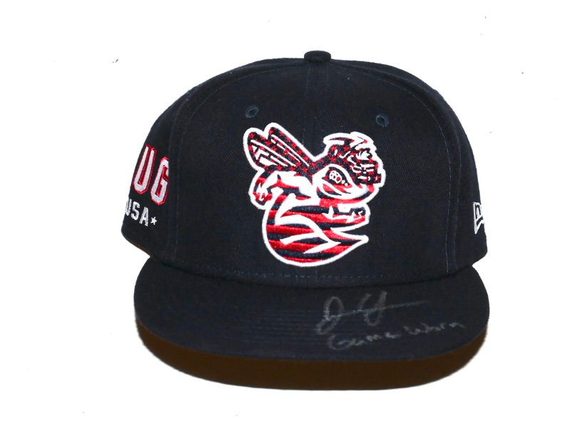 The featured official Augusta GreenJackets Alternate New Era 59FIFTY Hat was game worn by Justin Yeager in 2021 as a member of the GreenJackets. The Augusta GreenJackets are a Minor League Baseball team of the Carolina League and the Single-A affiliate of the Atlanta Braves. They play their home games at SRP Park in North Augusta, South Carolina. In 2021, Yeager pitched in 17 games for Augusta and went 5-0 with a 3.27 ERA. The talented right-hander signed the Hat and added “Game Worn” in silver. The Hat measures 7 3/8 and was obtained directly from Justin Yeager!