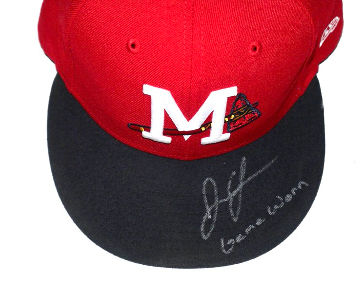 The featured official Mississippi Braves Road New Era 59FIFTY Hat was game worn by Justin Yeager in 2022 as a member of the Mississippi Braves. The Mississippi Braves were the Double-A affiliate of the Atlanta Braves, playing in Pearl, Mississippi, at Trustmark Park until the end of the 2024 season before relocating to Columbus, Georgia. They were known as the “M-Braves,” won Southern League championships, and served as a key development team for the Atlanta Braves organization for nearly two decades. In 2022, Yeager pitched in 38 games for the M-Braves and had a 1-0 Record with a 3.79 ERA. He recorded a 1.21 WHIP and added 6 Holds and 6 saves in 6 opportunities. Yeager signed the Hat and added “Game Worn” in silver. The inside headband of the Hat features #39 in black. The Hat measures 7 3/8 and was obtained directly from Justin Yeager!