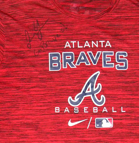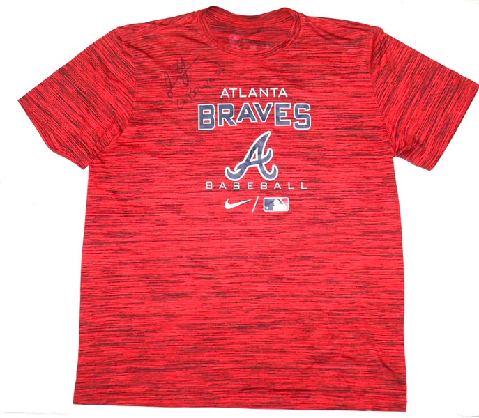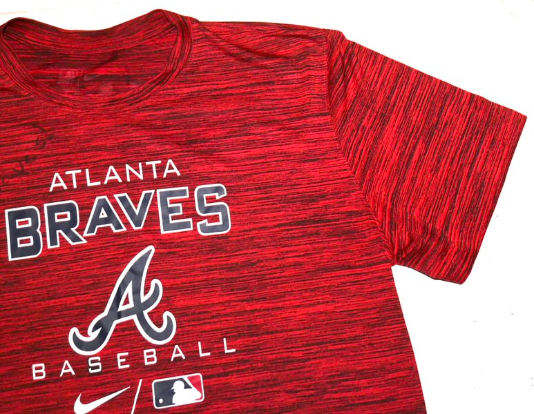 The featured official Atlanta Braves Baseball Nike Dri-Fit XL Shirt was issued to and worn in practice by Justin Yeager in 2022 as a member of the Rome Braves. The Rome Braves were the High-A Minor League Baseball affiliate of the Atlanta Braves, based in Rome, Georgia, playing from 2003 to 2023 under the Braves name before rebranding to the Rome Emperors in 2024, connecting to the city’s Roman history with a penguin mascot. In 2022, Yeager pitched in 11 games with Rome and was dominant with a 0.75 ERA. Yeager signed the Shirt and added “Go Braves!” in black. The back of the shirt features a Braves player issued “YEAGER” in bold letters. The Shirt was obtained directly from Justin Yeager!