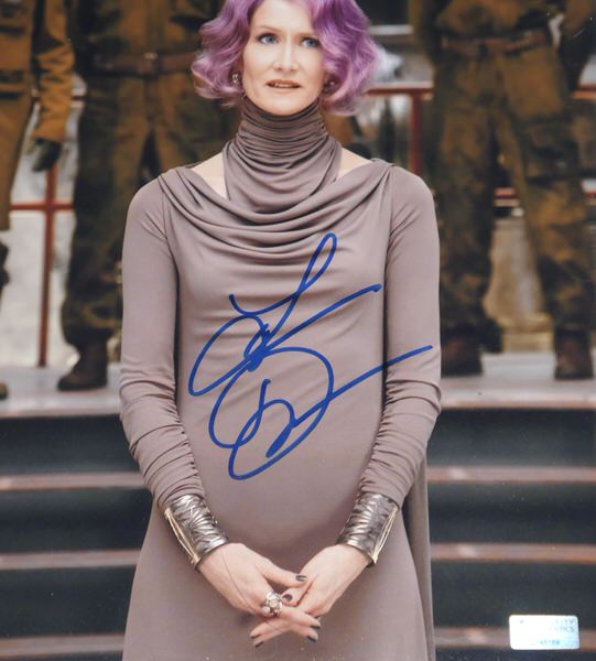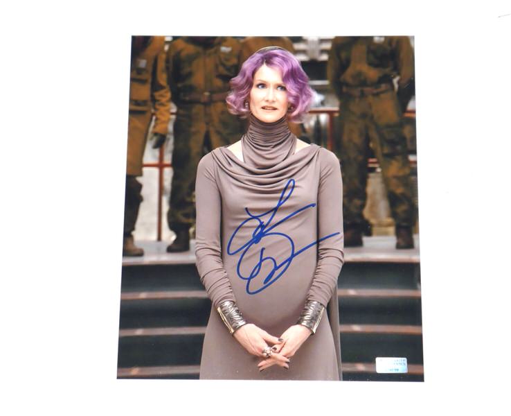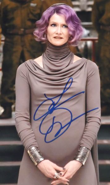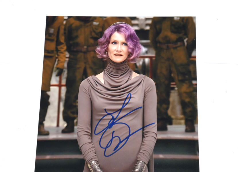 The featured Star Wars: The Last Jedi” 8×10 Photo has been signed in blue by actress Laura Dern who portrayed Vice-Admiral Amilyn Holdo, an officer in the Resistance. The photo includes an official hologram and matching COA from Celebrity Authentics.