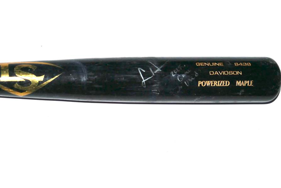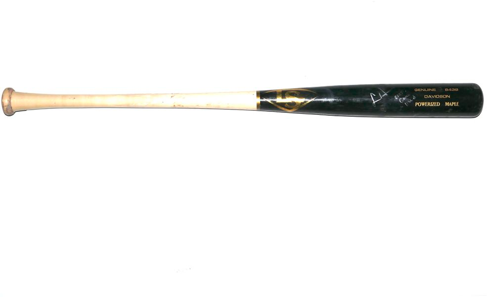 The featured Louisville Slugger S439 Maple Baseball Bat was game used by Logan Davidson in 2025 as a member of the Las Vegas Aviators. The Las Vegas Aviators, formerly known as the Las Vegas 51s and Las Vegas Stars, are a Minor League Baseball team of the Pacific Coast League and the Triple-A affiliate of the Oakland Athletics. They are located in Summerlin South, Nevada, a community in Las Vegas. In 2025, Davidson played in 73 games with the Aviators and hit .263 with a .412 On Base Percentage!! Davidson signed the Bat and added “2025 Game Used” in black. The Bat is CRACKED and shows light use. The Bat was obtained directly from Logan Davidson!!!