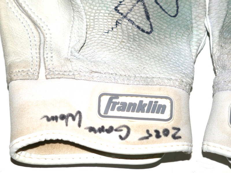 The featured Franklin Batting Gloves were game worn by Logan Davidson in 2025 as a member of the Las Vegas Aviators. The Las Vegas Aviators, formerly known as the Las Vegas 51s and Las Vegas Stars, are a Minor League Baseball team of the Pacific Coast League and the Triple-A affiliate of the Oakland Athletics. They are located in Summerlin South, Nevada, a community in Las Vegas. In 2025, Davidson played in 73 games with the Aviators and hit .263 with a .412 On Base Percentage!! Davidson signed the Gloves and added “2025 Game Worn” in black. The Gloves were obtained directly from Logan Davidson!!!