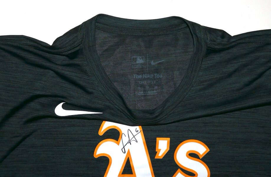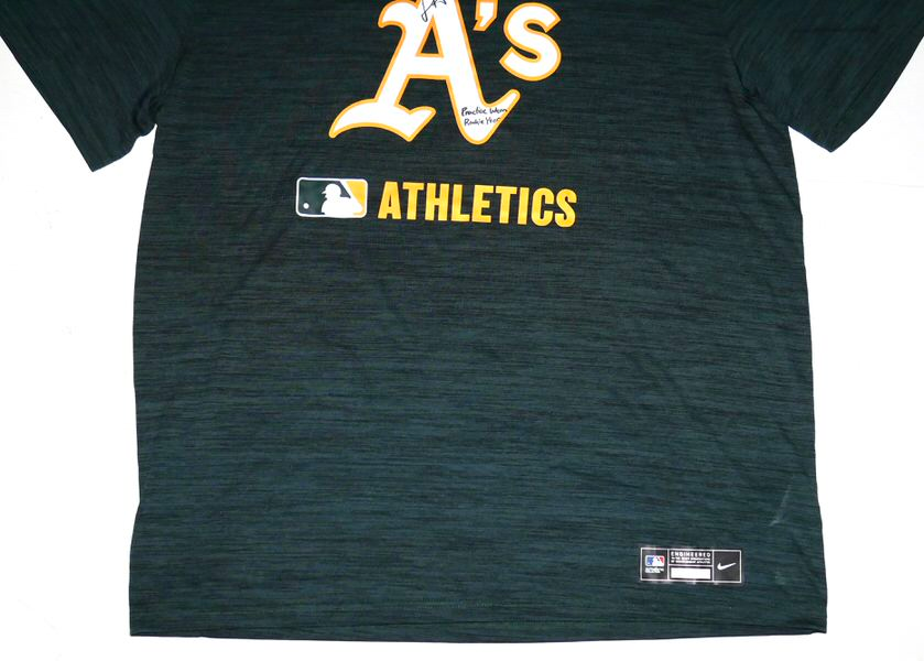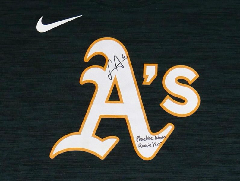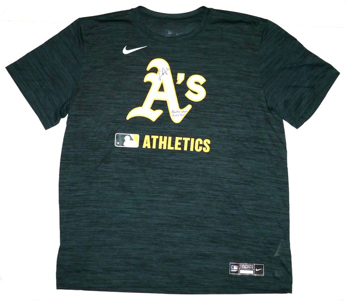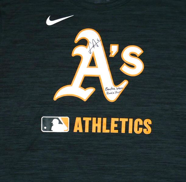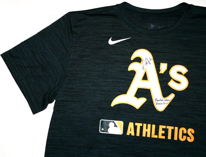 The featured official green Oakland Athletics Nike Dri-Fit XL Shirt was issued to and worn in practice by Logan Davidson in 2025, his rookie season as a member of the Oakland Athletics. Davidson played in 9 games with the Athletics in 2025. The talented infielder signed the Shirt and added “Practice Worn Rookie Year #6” in black. The back of the Shirt features an Athletics player issued “DAVIDSON” in bold lettering. The Shirt was obtained directly from Logan Davidson!