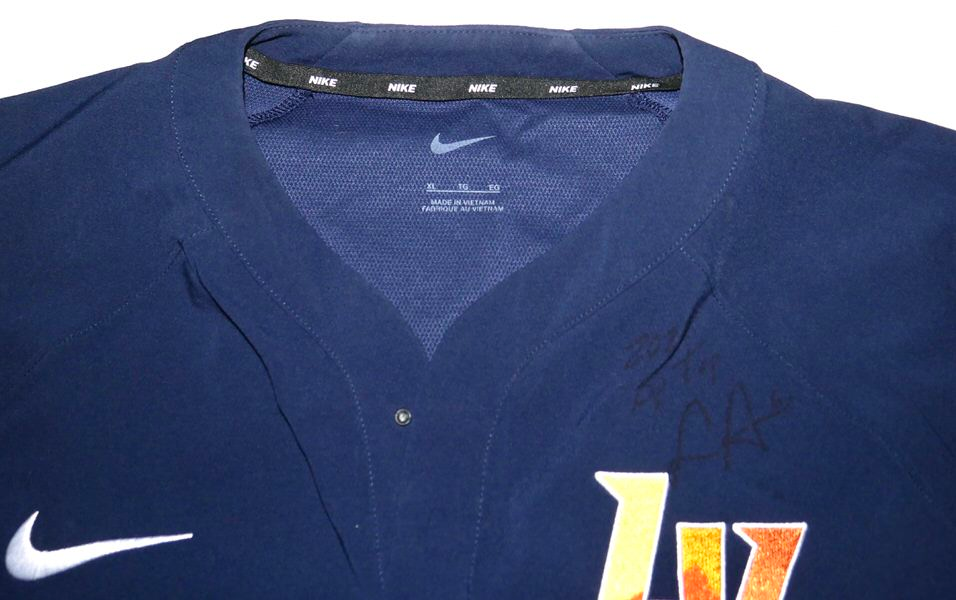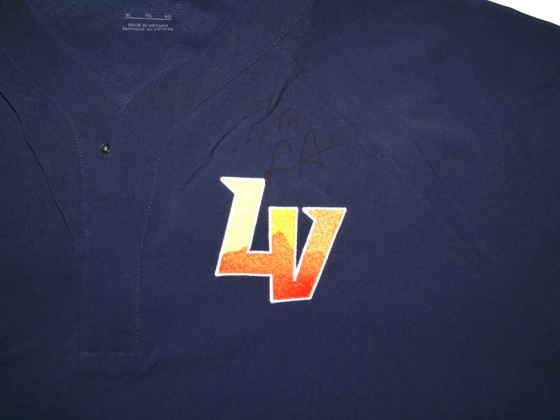 The featured official Las Vegas Aviators #8 Short Sleeve Nike XL Pullover was issued to and worn in batting practice by Logan Davidson in 2025 as a member of the Las Vegas Aviators. Davidson played in 73 games and hit .263 with 40 RBIs and an .809 OPS. The talented infielder signed the Pullover and added “2025 Bp Top” in black. The signature and inscription blend in with the color of the pullover. There is a Las Vegas Aviators player issued “8” on the right sleeve. The Pullover was obtained directly from Logan Davidson!