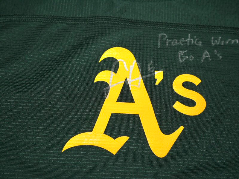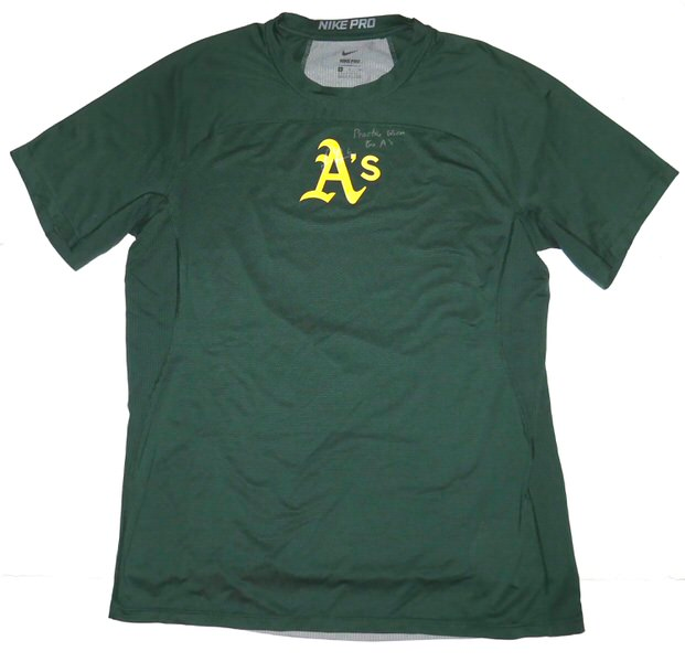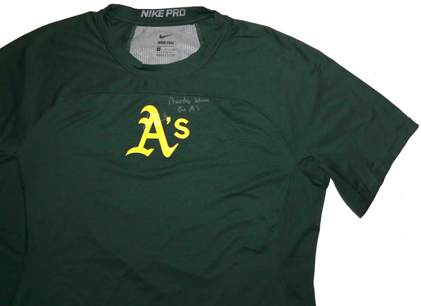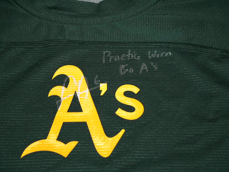 The featured official green Oakland Athletics Nike Dri-Fit Shirt was issued to and worn in practice by Logan Davidson in 2025, his rookie season as a member of the Oakland Athletics. Davidson played in 9 games with the Athletics in 2025. The talented infielder signed the Shirt and added “Practice Worn” and “Go A’s” and his “#6” in silver. The Shirt was obtained directly from Logan Davidson!