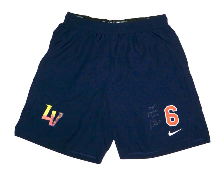 The featured official blue Las Vegas Aviators #6 Nike Dri-Fit Shorts were issued to and worn in practice by Logan Davidson in 2025 as a member of the Las Vegas Aviators. Davidson played in 73 games and hit .263 with 40 RBIs and an .809 OPS. The talented infielder signed the Shorts and added “2025 Practice Worn” in silver. There is a Las Vegas Aviators player issued “6” on the left leg as well as a Las Vegas Aviators player issued “DAVIDSON 6” label on the waistband. The Shorts were obtained directly from Logan Davidson!