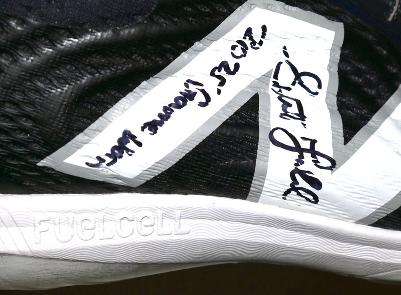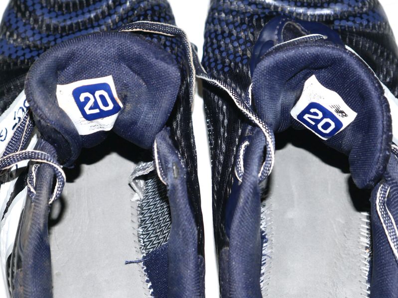 The featured blue and white New Balance FuelCell Cleats were game worn by Stuart Fairchild in 2025 as a member of the Atlanta Braves. Fairchild played in 28 Games for the Braves in 2025, slashing .216/.273/.333. The talented outfielder signed the Cleats and added “2025 Game Worn” in black. The Cleats feature a Tampa Bay Rays player issued “20” on the inside label of each shoe. These Cleats were also worn by Fairchild in practice while rehabbing his oblique strain. The Cleats were obtained directly from Stuart Fairchild!