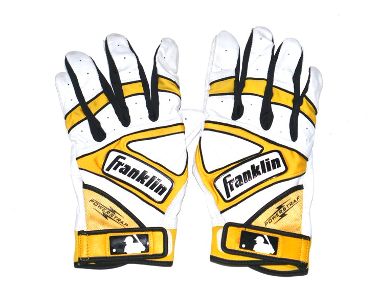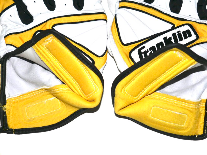 Stuart Fairchild 2025 Atlanta Braves Game Worn & Signed White & Yellow Franklin Powerstrap Batting Gloves