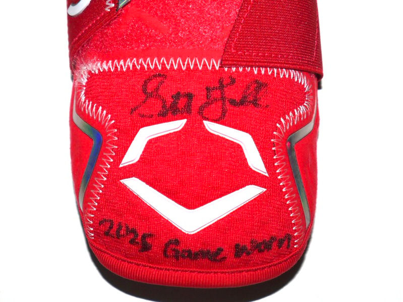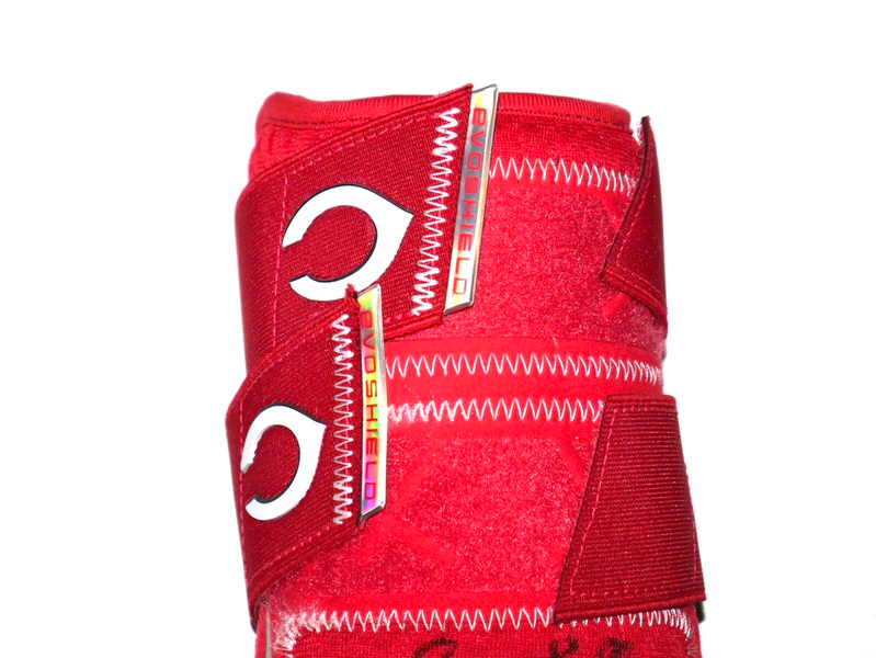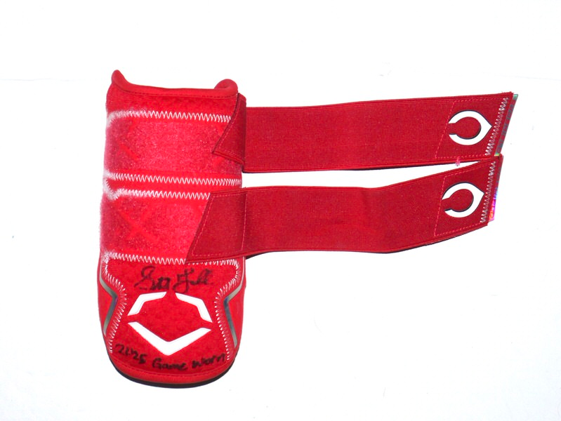 The featured Evoshield PRO-SRZ Batter’s Double Strap Elbow Guard was game worn by Stuart Fairchild in 2025 Spring Training as a member of the Cincinnati Reds. Fairchild played in 21 Games and had 45 plate appearances for the Reds. The talented outfielder signed the Elbow Guard and added “2025 Game Worn” in black. The Guard features a Cincinnati Reds player issued “FAIRCHILD 17” label. The Elbow Guard was obtained directly from Stuart Fairchild!