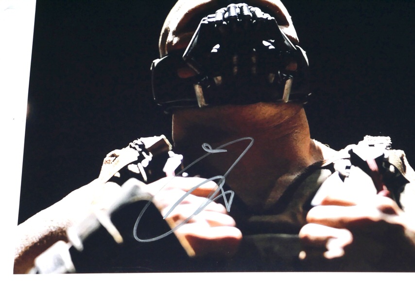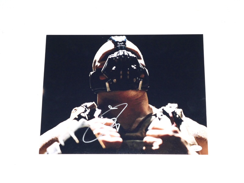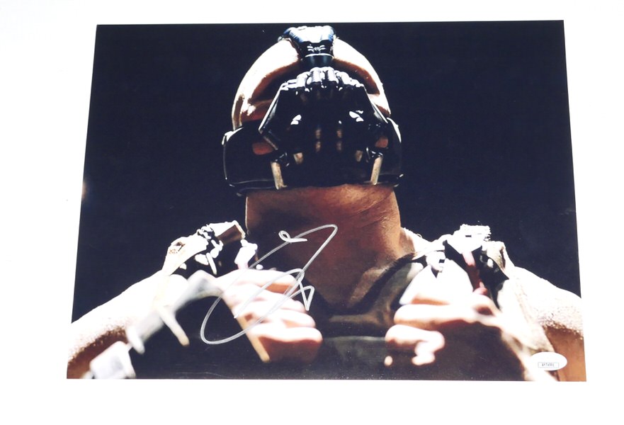 The featured 11 x 14 Photo has been signed by Tom Hardy who portrayed Bane, a mysterious and physically imposing villain who was excommunicated from the League of Shadows and portrays himself as a “liberator of pain” and revolutionary. He is desperate to continue Ra’s al Ghul’s legacy by destroying Gotham. The character was chosen by Christopher Nolan because of his desire to see Batman tested on both a physical and mental level. Hardy did a masterful job bringing Nolan’s vision to life. The Photo includes an official James Spence Authentication (JSA) hologram for authenticity purposes.