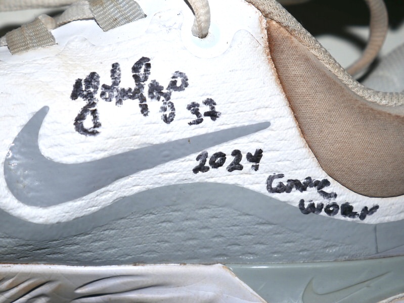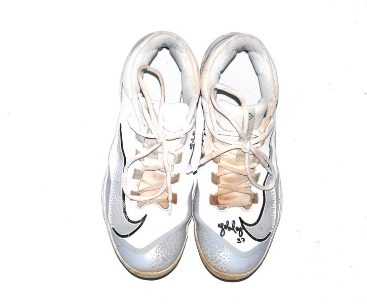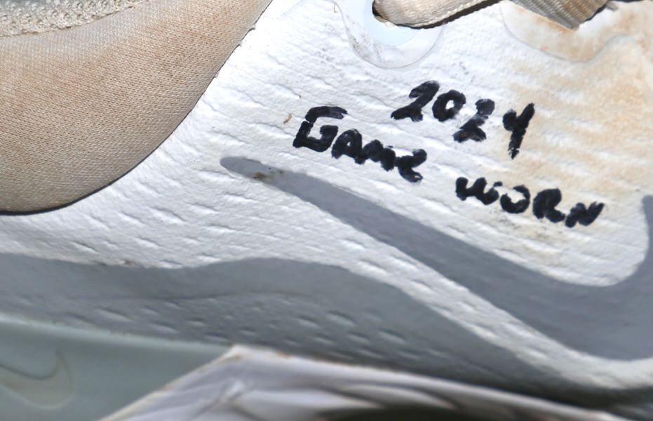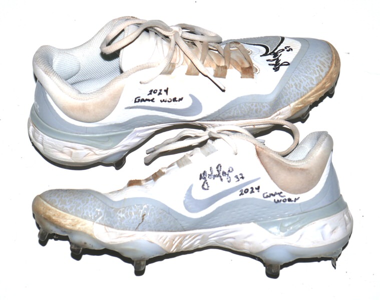 The featured size 10 white and silver Nike React Baseball Cleats were game worn by Yohel Pozo in 2024 as a member of the Las Vegas Aviators. The Las Vegas Aviators, formerly known as the Las Vegas 51s and Las Vegas Stars, are a Minor League Baseball team of the Pacific Coast League and the Triple-A affiliate of the Oakland Athletics. They are located in Summerlin South, Nevada, a community in Las Vegas. In 2024 with the Las Vegas Aviators, Pozo had another tremendous season hitting .324 with 15 HR’s and 54 RBI’s for an .873 OPS. Pozo signed the Cleats and added “2024 Game Worn” in black. The Cleats show good use and were obtained directly from Yohel Pozo!!!